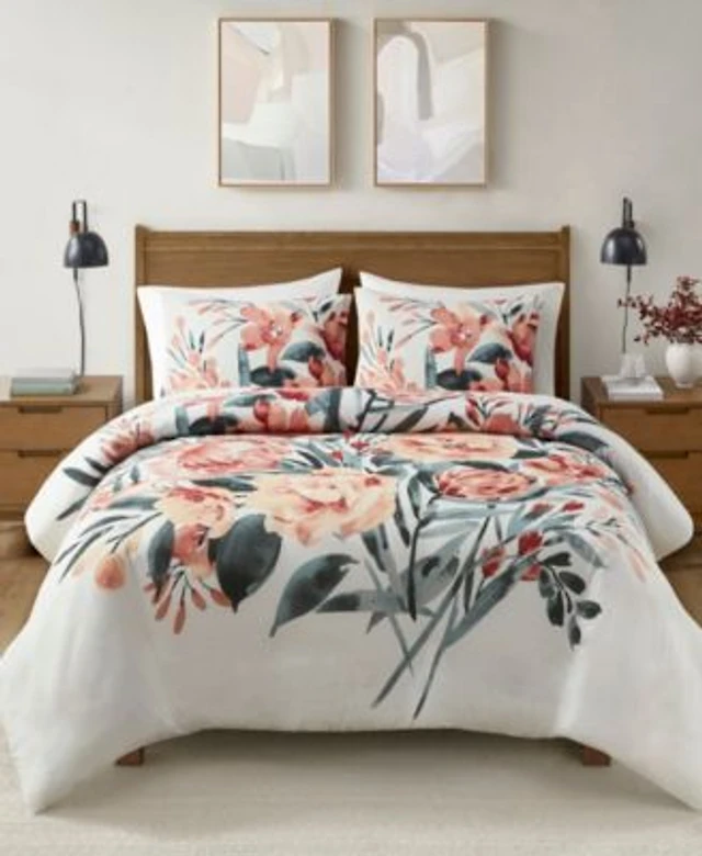 Percale cotton watercolour floral-print duvet cover for cm bed