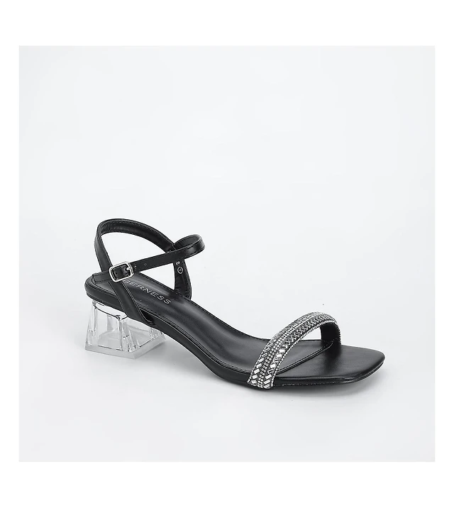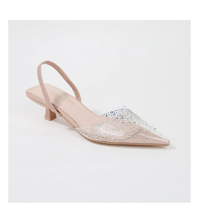 Berness Women's Maxi88 Clear Upper Kitten Heels with Rhinestone Detail