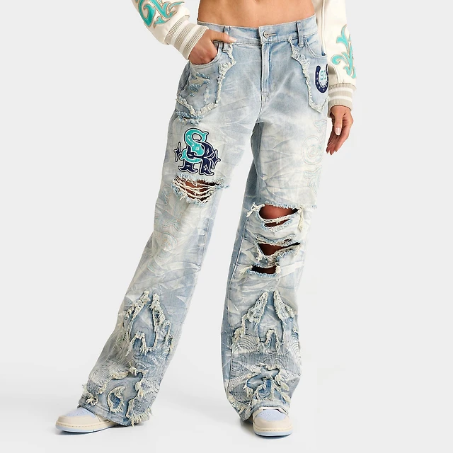 Mom fit decorative rips jeans