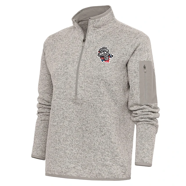 Women's Antigua Oatmeal Rocket City Trash Pandas Fortune Half-Zip Pullover Jacket
