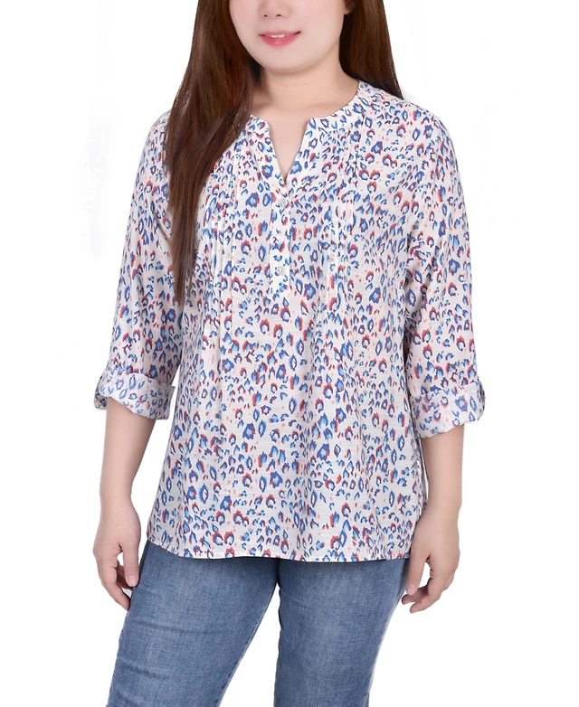 Petite 3/4 Roll Tab Sleeve Blouse Top