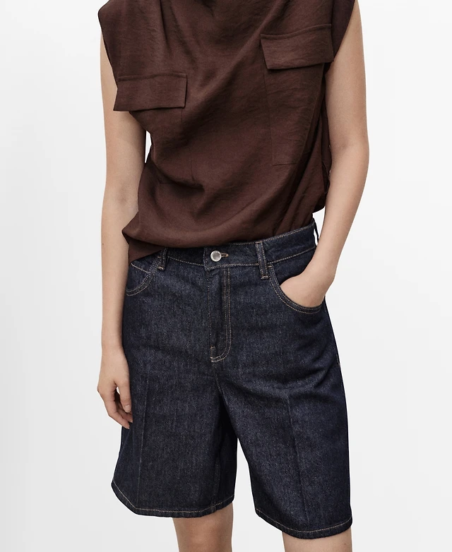 Mango Women's High-Waisted Denim Bermuda Shorts