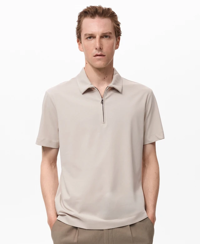 Mango Men's Zip Neck Polo Shirt