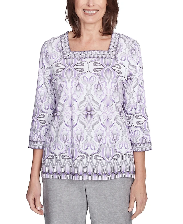 Alfred Dunner Women's Parrot Cay Tropical Floral Embroidered Top
