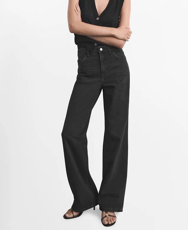 Mango Women's Wide Leg Loose Mid-Rise Jeans