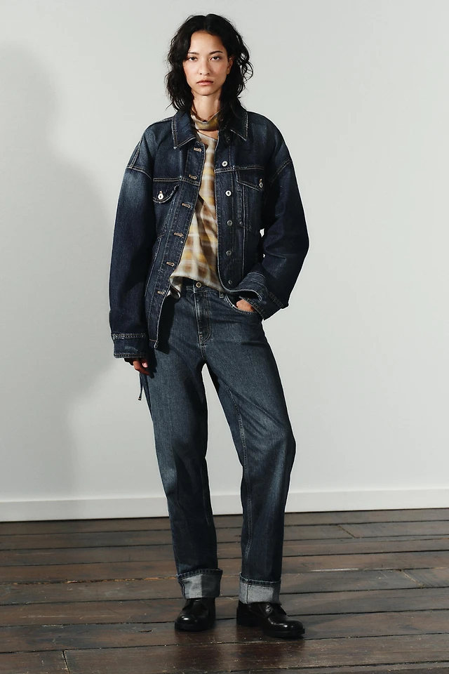 TRF MID-RISE RIPPED BAGGY FOLDED JEANS