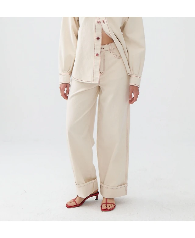 Nocturne Women's Jeans with Contrast Color Embroidery