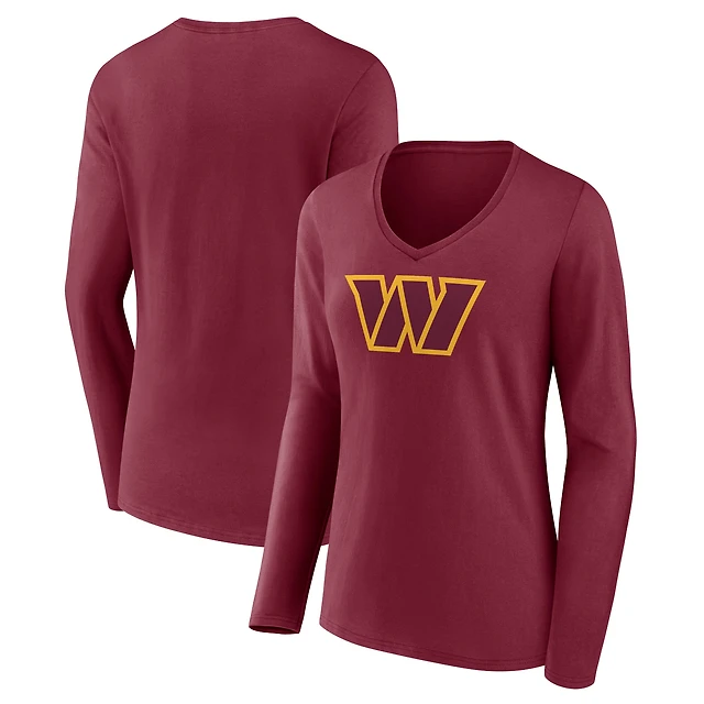 Women's Burgundy Washington Commanders Primary Team Logo Long Sleeve V-Neck T-Shirt