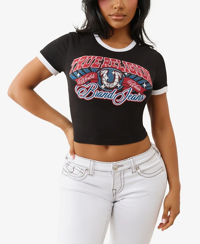 True Religion Women's Ss Embroidered Horseshoe Crew Neck T-Shirt