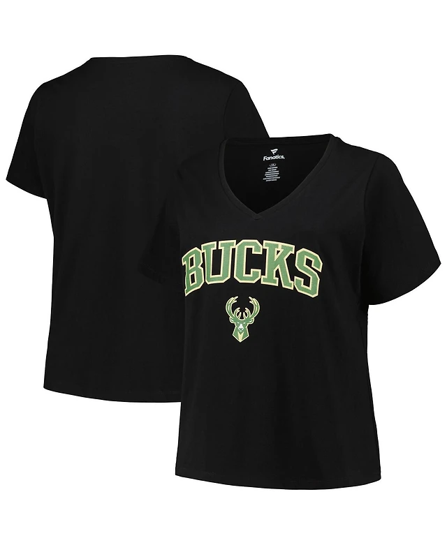 Women's Profile Black Milwaukee Bucks Plus Size Arch Over Logo V-Neck T-shirt