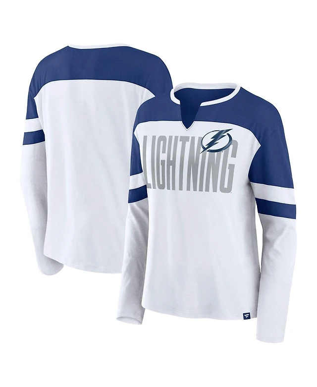 Fanatics Women's White/Blue Tampa Bay Lightning Frozen Long Sleeve Notch Neck T-Shirt