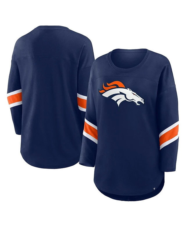 Women's New Era Navy Denver Broncos Lace-Up Notch Neck Long Sleeve T-Shirt