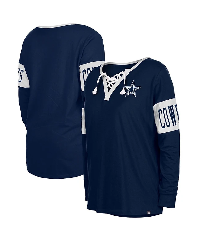Women's New Era Navy Dallas Cowboys Lace-Up Notch Neck Long Sleeve T-shirt