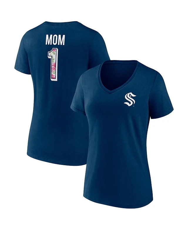 Women's Fanatics Deep Sea Blue Seattle Kraken Team Mother's Day V-Neck T-Shirt