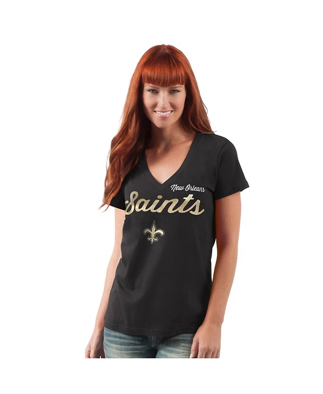 G-iii 4Her by Carl Banks Women's Black New Orleans Saints Post Season V-Neck T-Shirt