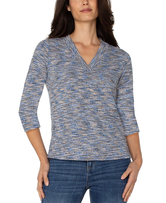 Women's WEAR by Erin Andrews Royal Los Angeles Rams Color Block Boxy Modest Crop V-Neck T-Shirt