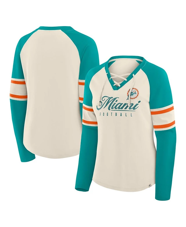Fanatics Women's Cream/Brown Cleveland Browns Hometown Gridiron Hero Raglan Lace-Up V-Neck Long Sleeve T-Shirt