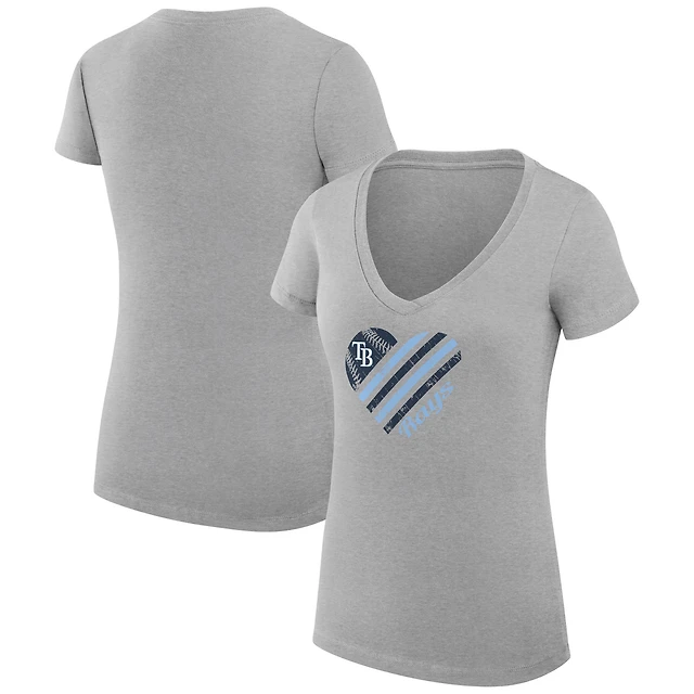 Women's G-III 4Her by Carl Banks Heather Gray Tampa Bay Rays Super-Slim Fit Lightweight Heart V-Neck T-Shirt