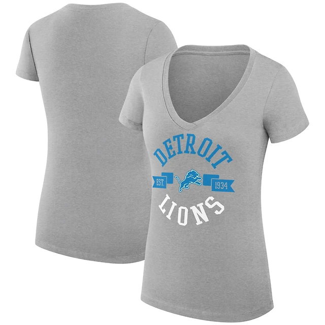 Women's G-III 4Her by Carl Banks Heather Gray Detroit Lions Super-Slim Fit Lightweight City Graphic Team V-Neck T-Shirt