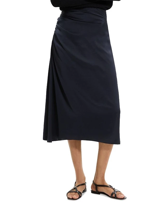 Avec Les Filles Women's Asymmetrical Ruched Midi Skirt