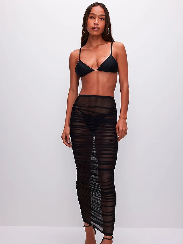 Free People Ruched Mesh Top Mesh Maxi Skirt Set