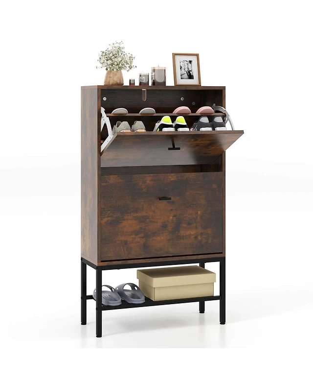 Industrial Shoe Storage Cabinet with 2 Flip Drawers 1 Bottom Metal Shelf Organizer