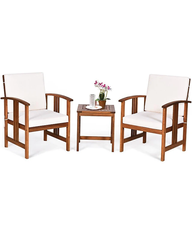 Gymax 3PCS Patio Wicker Rattan Conversation Set Outdoor Furniture Set w/ Turquoise Cushion