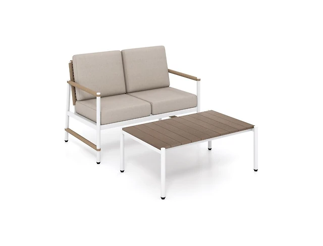 Slickblue Outdoor Loveseat Furniture Set with Thick Padded Cushions and Glass Coffee Table For Patio Relaxation
