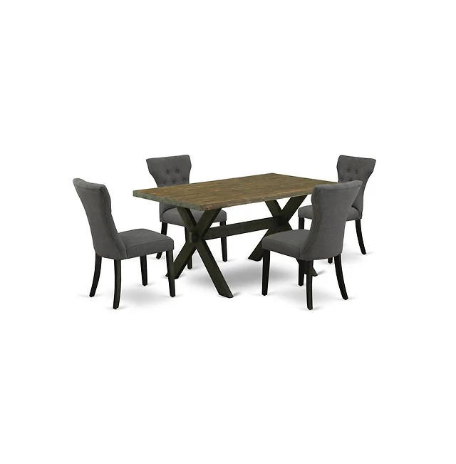 East West Furniture 5-Pc Kitchen Dining Set- 4 Parson Dining Chairs with Black Linen Fabric Seat and Stylish Chair Back