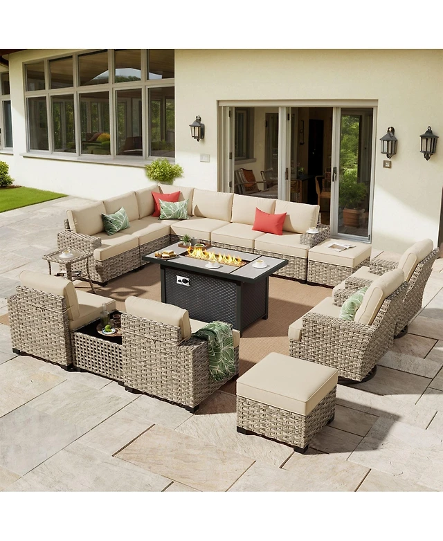 Xizzi 12 Pieces Outdoor Furniture Patio Sectional Sofa,No Assembly Required Pe Wicker Conversation Sets with Armchairs,Ottomans and Coffee Table