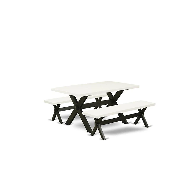 East West Furniture 3 Piece Kitchen Table Set - 1 Cement Kitchen Table and 2 Small Wood Bench - Stable and Durable Construction