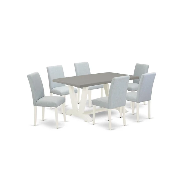 East West Furniture 7-Piece Dining Room Table Set- 6 Dining Chair with Black Linen Fabric Seat and Stylish Chair Back