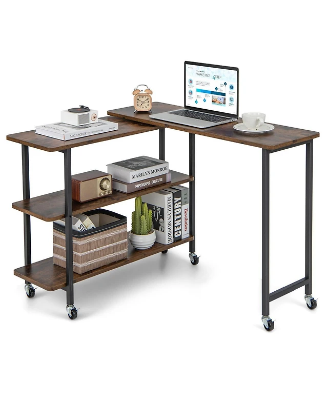 360° Rotating Sofa Side Table with 2-Tier Storage Shelves