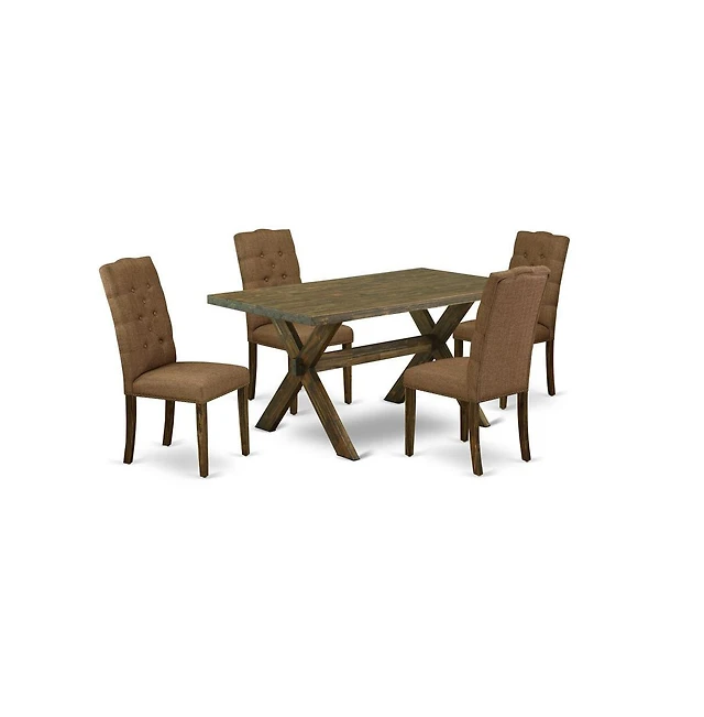 East West Furniture 5-Piece Fashionable Dining Room Set a Good Linen White Wood Table Top and 4 Stunning Linen Fabric Kitchen Chairs with Stylish Chai