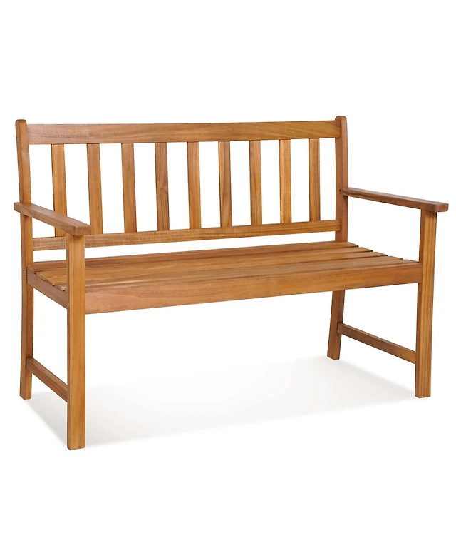 Costway Patio Acacia Wood Bench 2-Person Slatted Seat Backrest