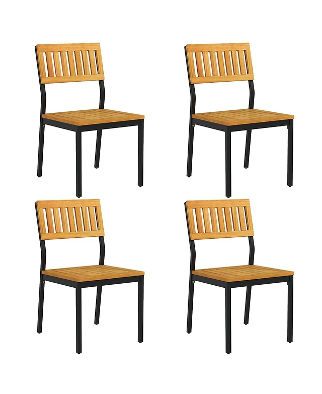 Gymax Dining Chair Set of 4 Modern Patio Chairs/Acacia Wood Backrest Slanted Seat