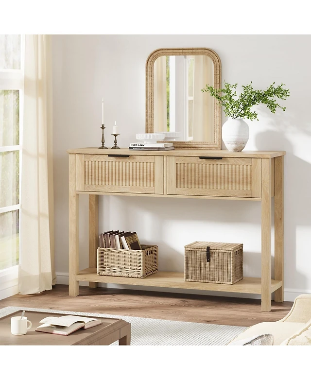 gaomon Farmhouse Entryway Table, Narrow Sofa Table with Open Storage Shelf, Metal Frame Skinny Console Table with V-Shaped Leg Design, Behind Couch Ta