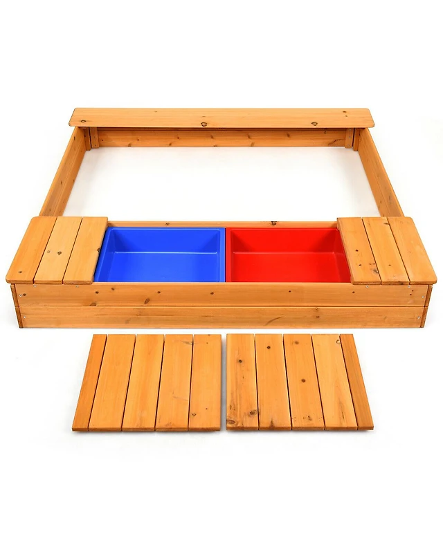 Slickblue Kids Wooden Sandbox with 2 Foldable Bench Seats