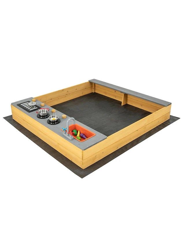 Wooden Sandbox Kids Sand Pit with Kitchen Playset Accessories for 3-8 Years Old