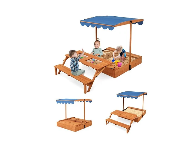 Slickblue Kids Wooden Sand Box with Foldable Picnic Sensory Table and Bench