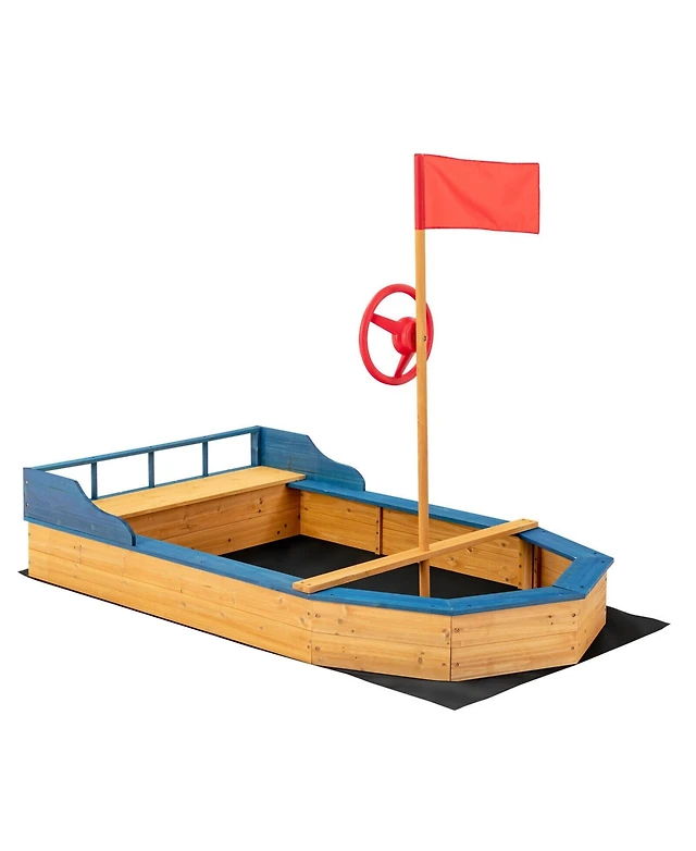 Kids' Pirate Boat Sandbox with Flag and Rudder