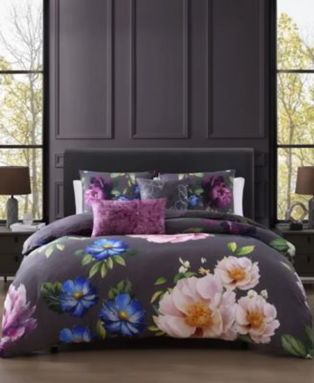 Bebejan Deep Purple Garden Bedding 200 Thread Count 100% Cotton Sateen 5 Piece King Size Reversible Comforter Set