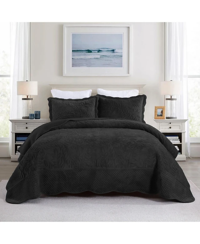 Bebejan Rosewood Harmony 100 Cotton Sateen 3 Piece Reversible King Size Quilted Coverlet Set