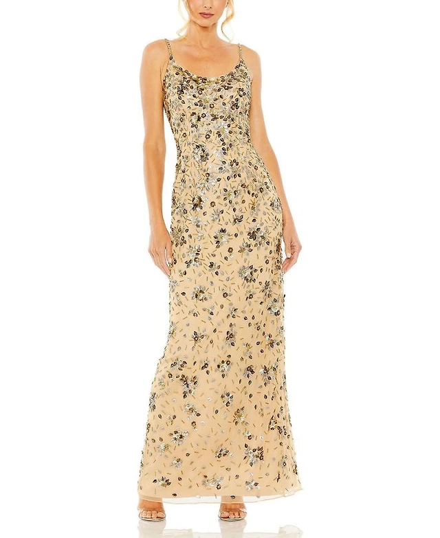 Mac Duggal Women's Elegant Beaded Scoop Neck Jersey with 3D Flower Gown
