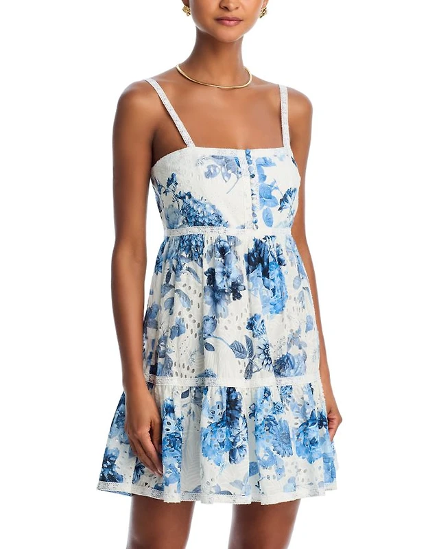 Bebe Women's Square Neck Ruffle Lace Midi Dress
