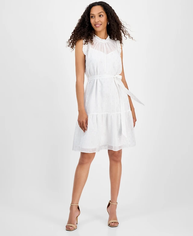 Vince Camuto Petite Cotton Tie-Neck Sleeveless Tiered Dress