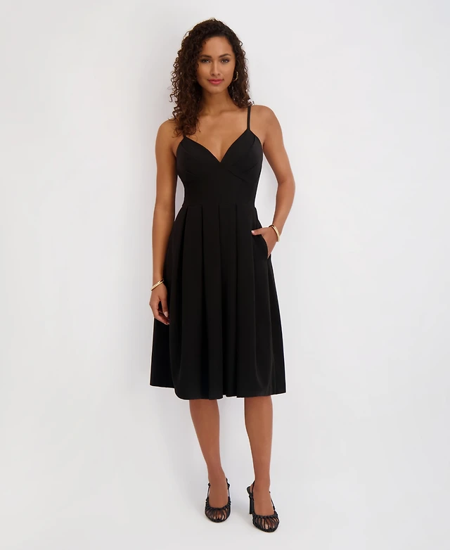 Modenaire Women's Wide Strap Square Neck Fit & Flare Midi Dress