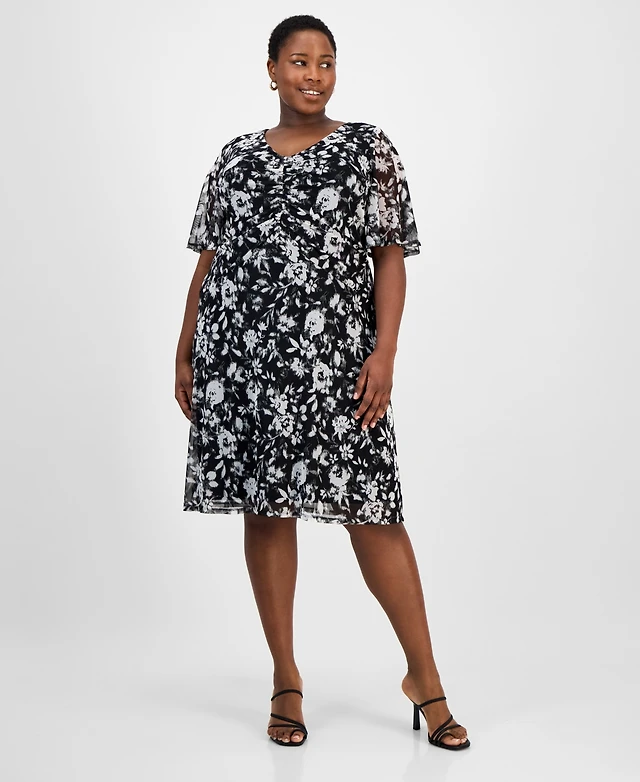 City Studios Trendy Plus Cowl-Neck Foiled Floral Ruched Dress