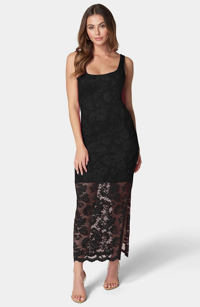 bebe Women's High Neck Lace Midi Dress