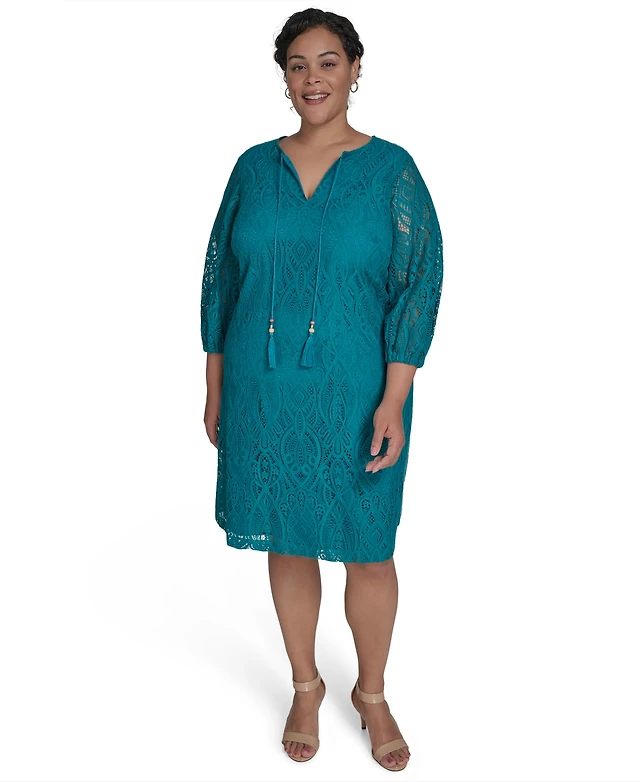 Plus Lace Up Double V Neck Dress